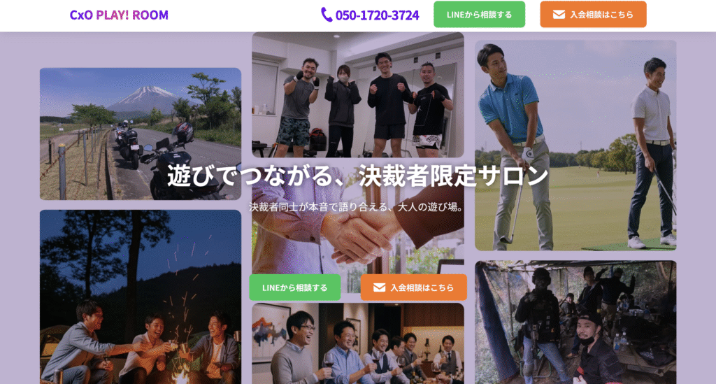 「遊び」と「信頼」を掛け合わせ、経営者・決裁者同士が本音でつながるための招待制コミュニティです。ゴルフや会食といった共通の体験を通じて、形式的な名刺交換では得られない、深い紹介や協業のサイクルを自然に生み出します。